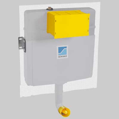 Campo di applicazione: Per installazione ad incasso in pareti di muratura per wc a pavimento. Caratteristiche: Cassetta risciacquo in materiale PE con isolamento anticondensa e fonoassorbente. Capacità 9 lt. Profondità 85 mm. Comando frontale di attivazione scarico con protezione cantiere regolabile, predisposto per placca di risciacquo doppio flusso 3/6 lt (altre possibilità 2,5-4,5/4,5-9 lt). Valvola di riempimento silenziosa. Allacciamento idrico DN 15 (1/2). Non pneumatizzabile. Dotazioni: Rete per intonaco, materiali di fissaggio ed allacciamento wc a pavimento, tubo di cacciata con isolamento, placca di attivazione non compresa